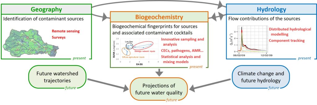 Ce projet pluridisciplinaire développe une nouvelle méthodologie intégrée pour identifier les sources (diffuses et ponctuelles) de contaminants sur les bassins versants et mieux prédire la qualité des eaux en contexte de changements climatiques et d’usages des sols et de l’eau.