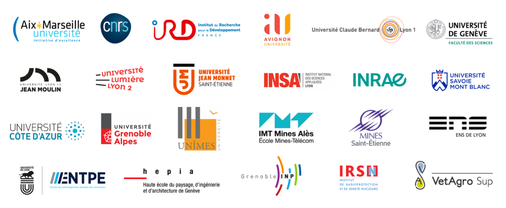 Les unités de recherche membres : Laboratoire EVS, UMR 5600 | LPED UMR 151 | LEHNA, UMR 5023 | EDYTEM, UMR 5204 | CEREGE, UM 1410 | IMBE UMR, 7263 | UMR 7300 Espace | IGE, UMR 5001 | UR RECOVER | UMR GEAU | UR ETNA | UR RIVERLY | UR LESSEM | UMR CARRTEL 042 | Centre LGEI | Laboratoire LCME | DEEP, EA7429 | SRTE | Institut Forel Institut des Sciences de l’Environnement | UMR 5557 « Ecologie Microbienne » | UMR CNRS 6524 | HEPIA | CHROME, EA7352