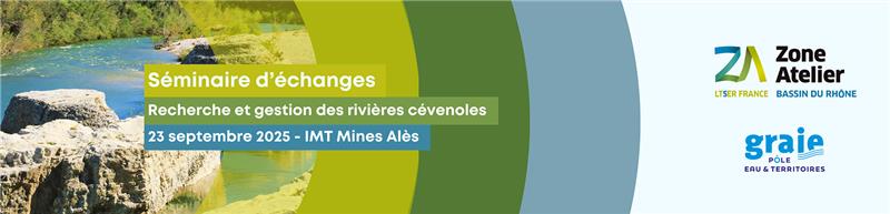La ZABR, le Site Atelier Rivières Cévenoles, les EPTB Gardons, Ardèche et ABCèze ont le plaisir de vous convier au Séminaire « Recherche et Gestion des rivières cévenoles » qui se déroulera le mardi 23 septembre à partir de 8h30, au Hub Créativité de IMT Mines Alès (1A rue Jules Renard, Alès).