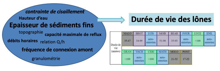 - La vitesse de sédimentation dans les bras alluviaux des fleuves peut être prédite par les variables modifiées par les gestionnaires : fréquence de connexion et hydraulique en crue (Riquier et al., 2017)