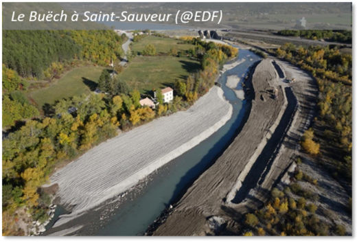 Projet Hymocares. Suivi de deux opérations emblématiques de recharge sédimentaire dans les Alpes : (1) Le Buech en aval du barrage de St Sauveur, avec 40 000 m3 de graviers réinjectés artificiellement dans le lit en aval d’un barrage (2) la haute vallée du Drac, avec 400 000 m3 de graviers utilisés pour recréer un lit en tresses.