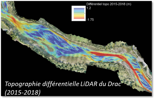 Suivi de ces projets de restauration par topographie différentielle et imagerie haute résolution (campagnes lidar aéroportées et des prises de vue drone) et traçage sédimentaire par RFID active UHF de reconstruire la dynamique de